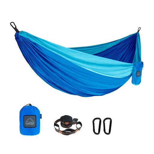 This outdoor hammock is made from durable 210T parachute nylon fabric, offering a lightweight and breathable design ideal for camping, hiking, or b...